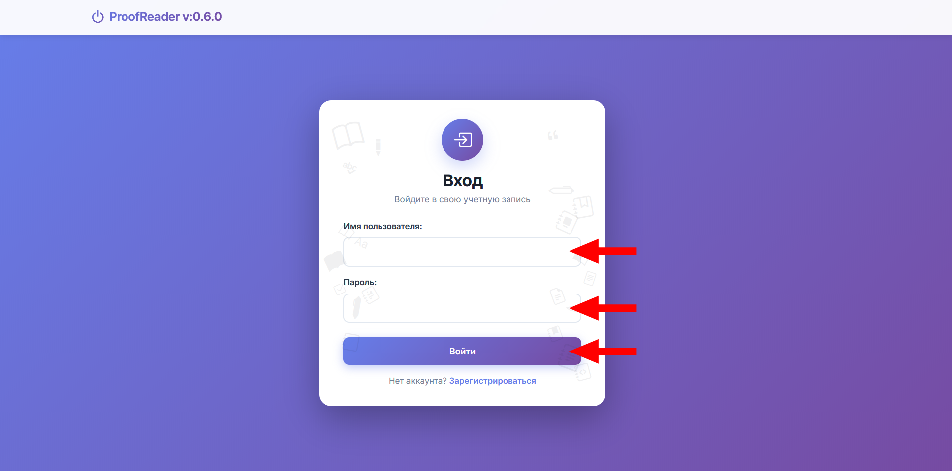Введите Имя пользователя и Пароль, затем нажмите кнопку Войти.