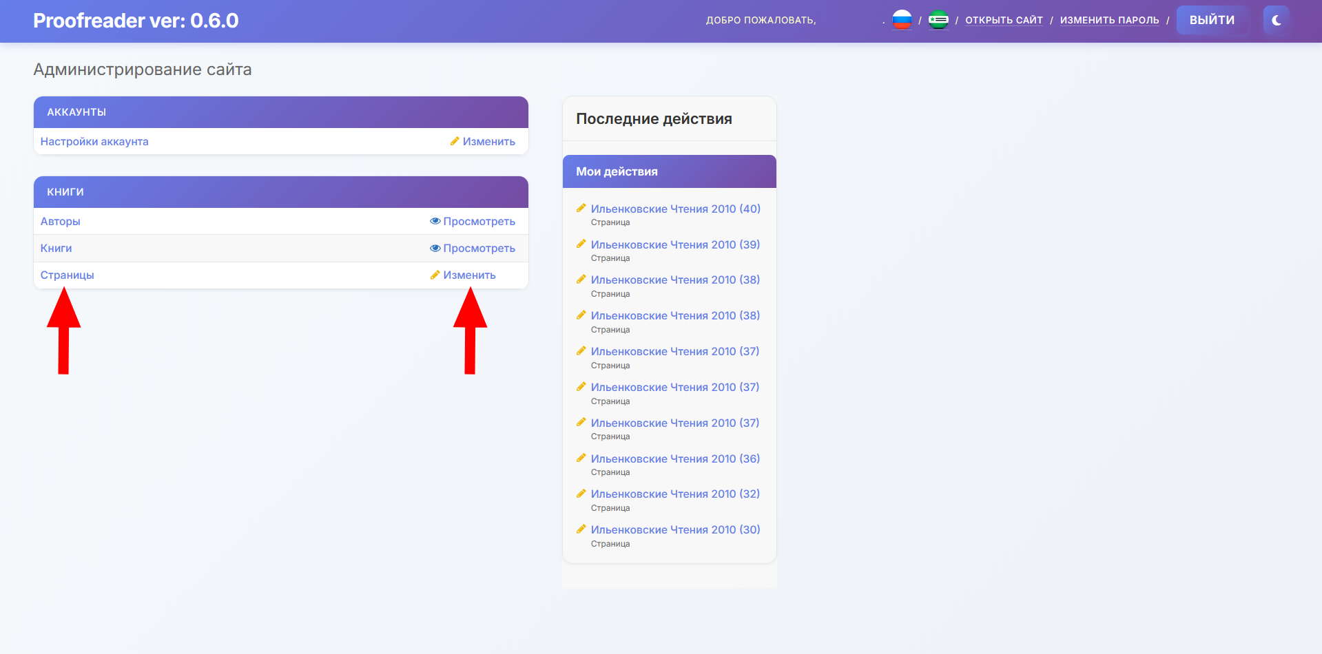 Откройте список страниц для редактирования: для этого нажмите Страницы или Изменить.