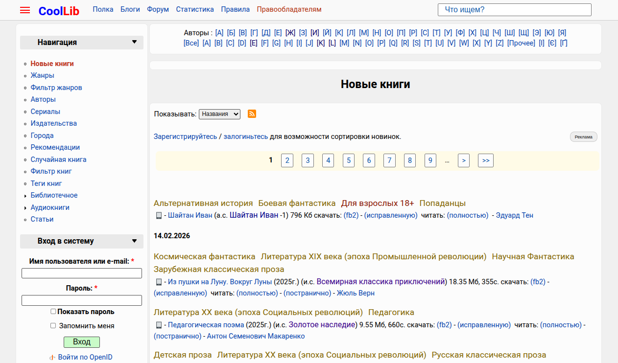 CoolLib — онлайн-библиотека, основанная на книгах в формате FB2.