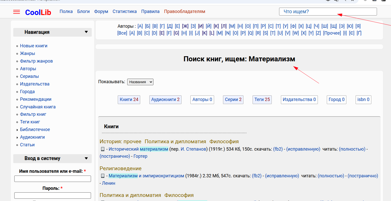 Поиск, чтение онлайн и выкачка части книг доступна как зарегистрированным, так и анонимным посетителям. Но лучше все-таки зарегистрироваться, это расширяет ваши возможности: будет отключена реклама, появятся права на выкачку всех произведений автора одним файлом, выбор формата скачиваемой книги, доступ к иноязычной литературе, возможность участвовать в форумах, добавлять и оценивать книги и многое прочее. (Источник)