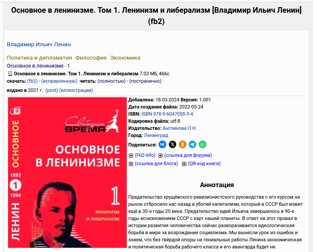 На странице книги представлена общая информация: аннотация, обложка и метаданные.