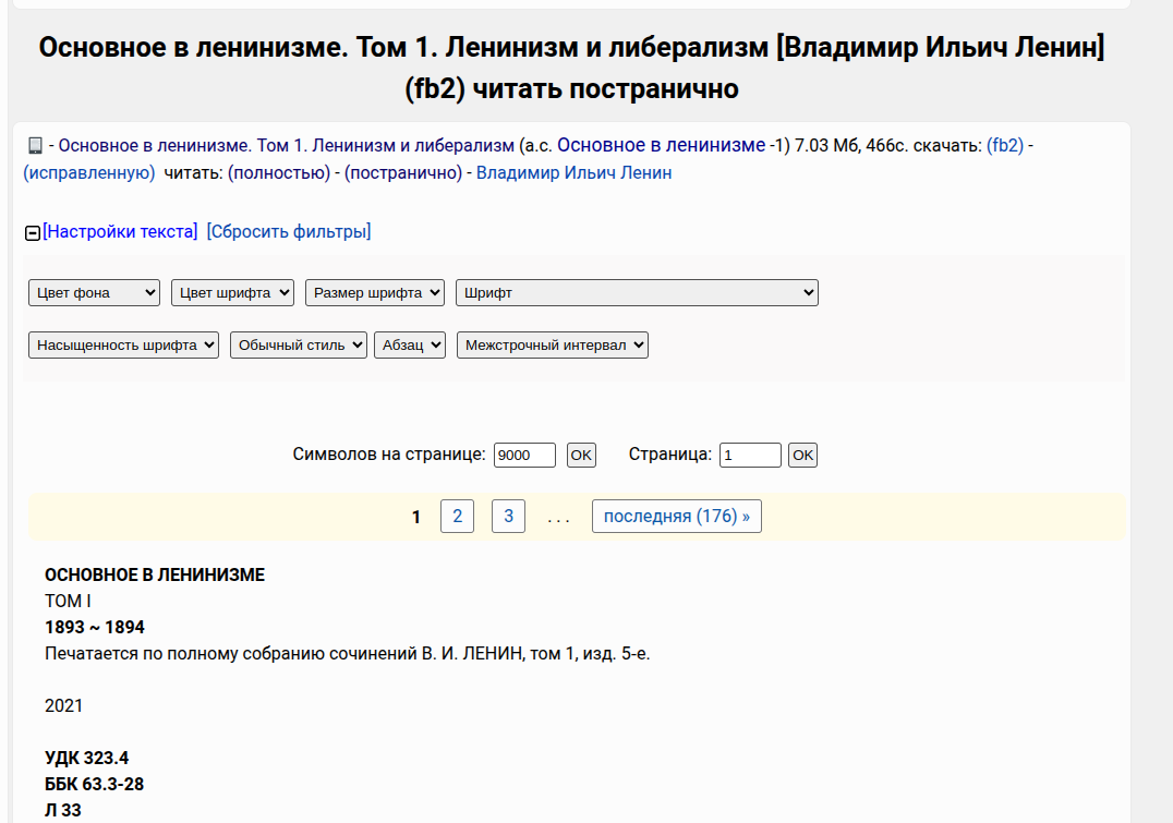 Реализована функция чтения на сайте: полный текст и постраничный просмотр. На отдельной странице можно просмотреть все иллюстрации из книги.