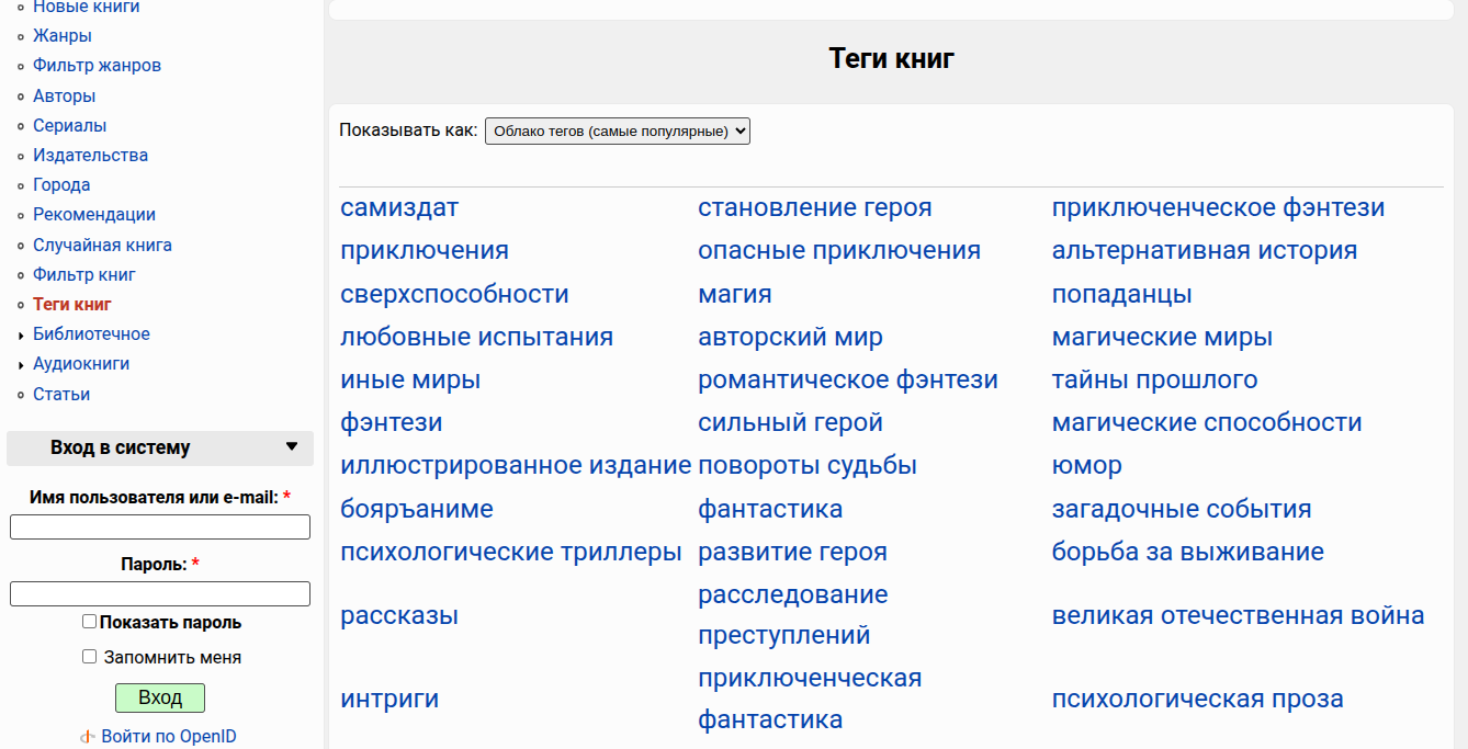 Кроме жанров, к книге могут быть привязаны теги.