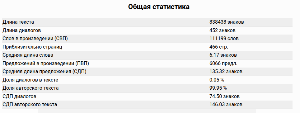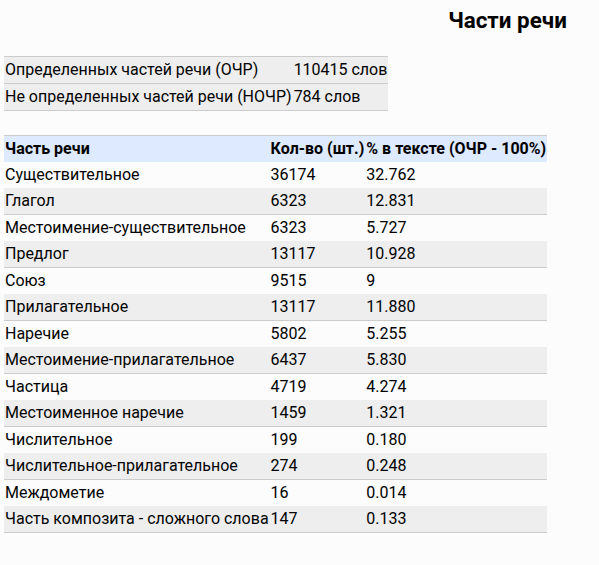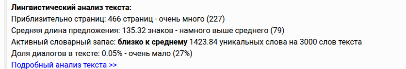 Помимо показанных, лингвистический анализ включает и другие метрики.