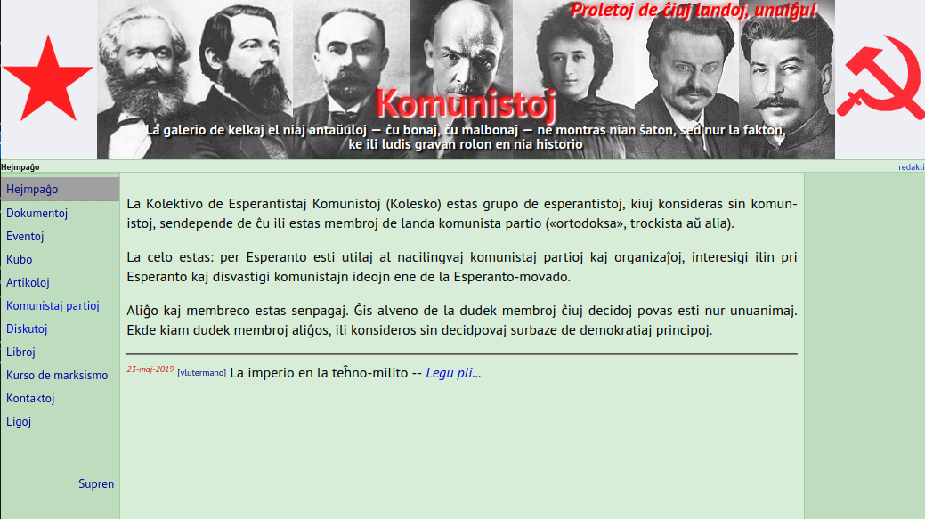 Сайт «Kolektivo de Esperantistaj Komunistoj»