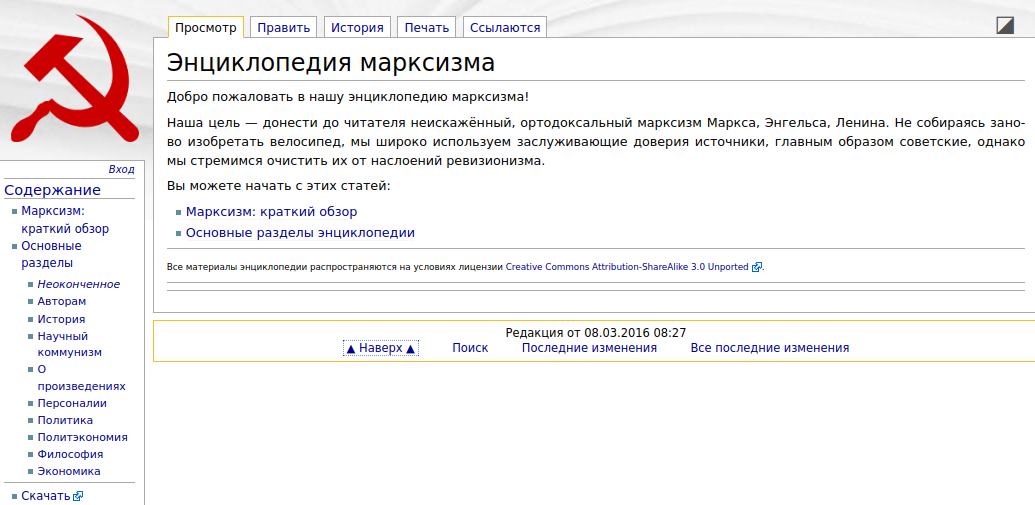 Энциклопедия марксизма работает на движке PmWiki.