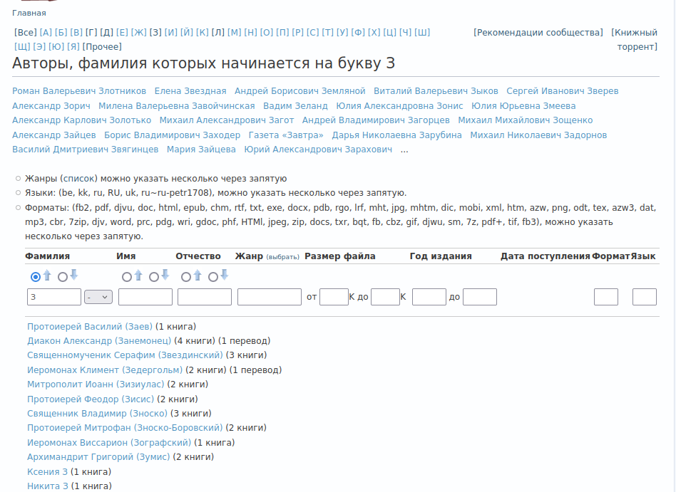 С главной страницы доступен поиск по каталогу авторов.