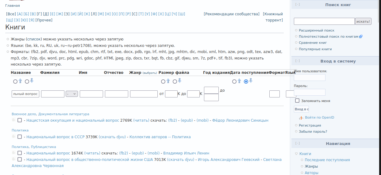 6) Флибуста - библиотека художественная. Естественно-научную и техническую литературу следует заливать в дружественную библиотеку Либген (Источник)