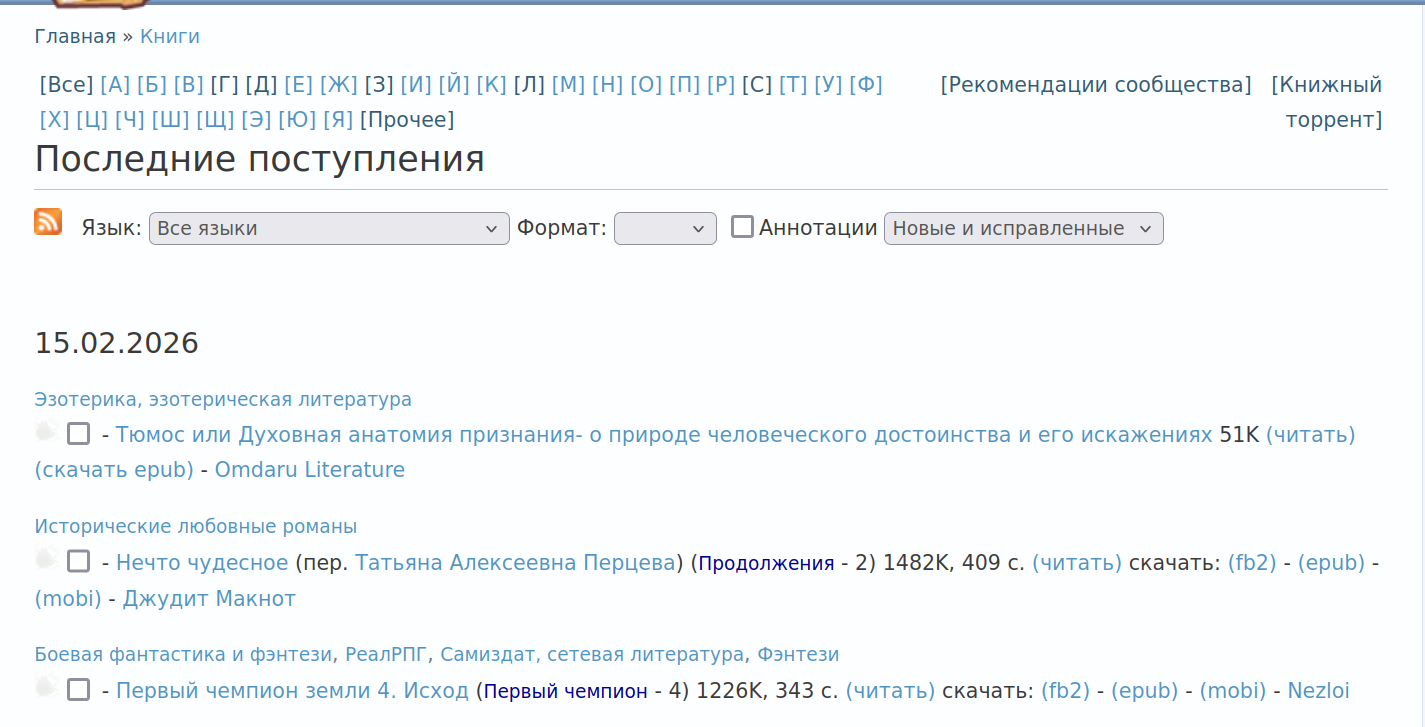 У сайта есть OPDS-каталог.