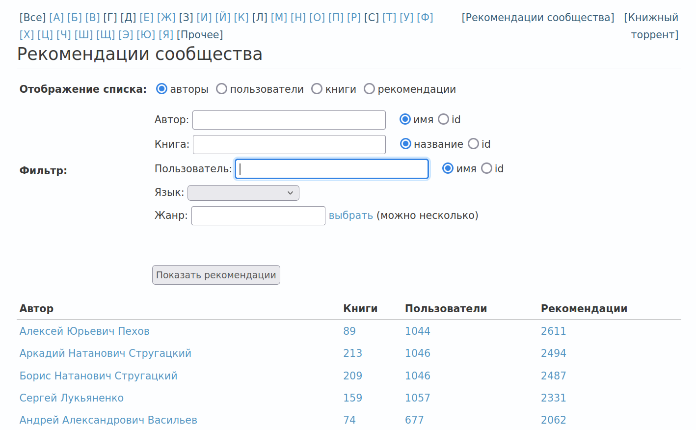 Поиск книг на основе рекомендаций сообщества: