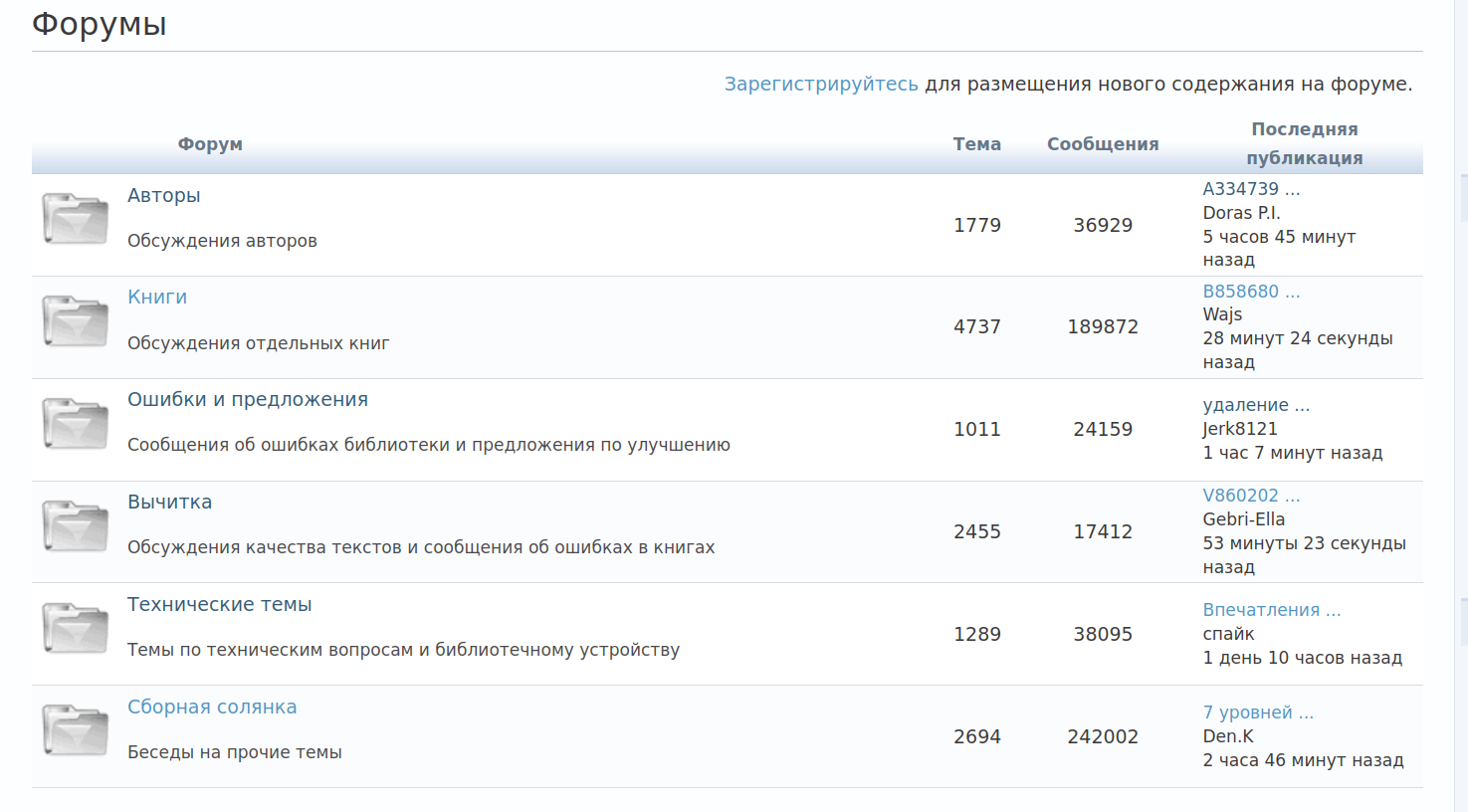 На сайте есть блоги и форум. Там обсуждаются сайт, книги и другие темы. И блоги, и форум активны — сообщения появляются регулярно.