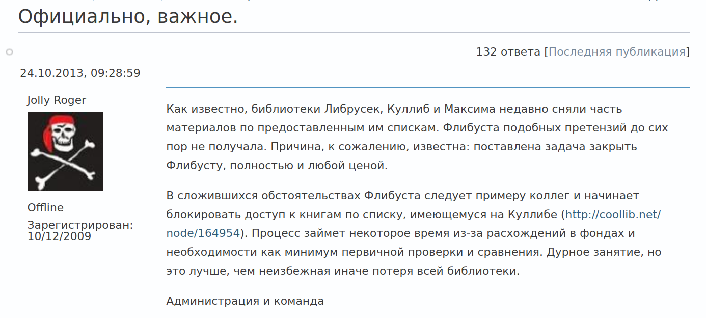 На случай проблем с основными адресами существуют альтернативные способы оповещения: x.com/flibusta и librusec.ucoz.de.