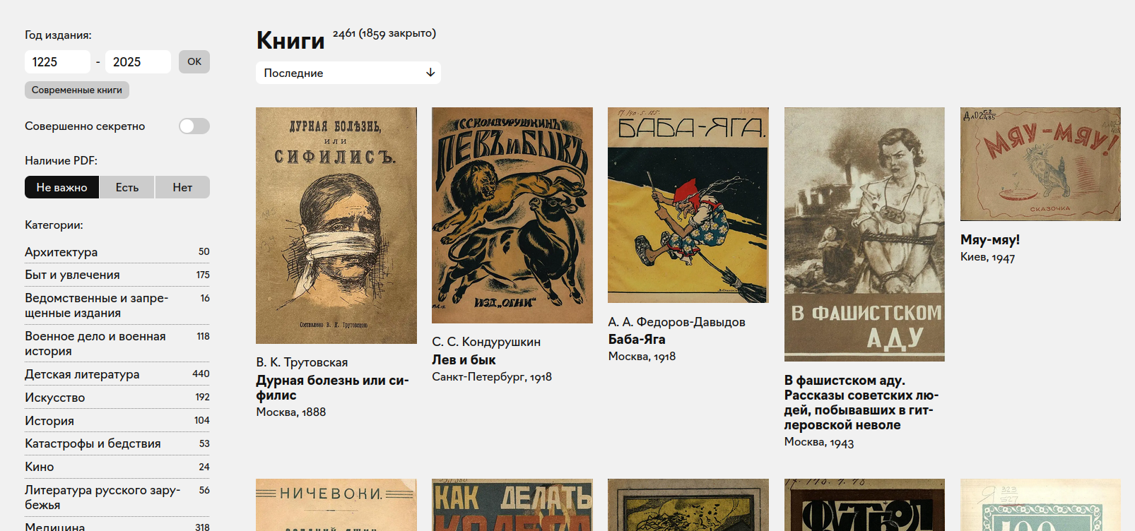 Для каждой книги указаны автор, издательство, год издания, город издания и библиографическая информация. Для части книг из каталога можно скачать PDF.