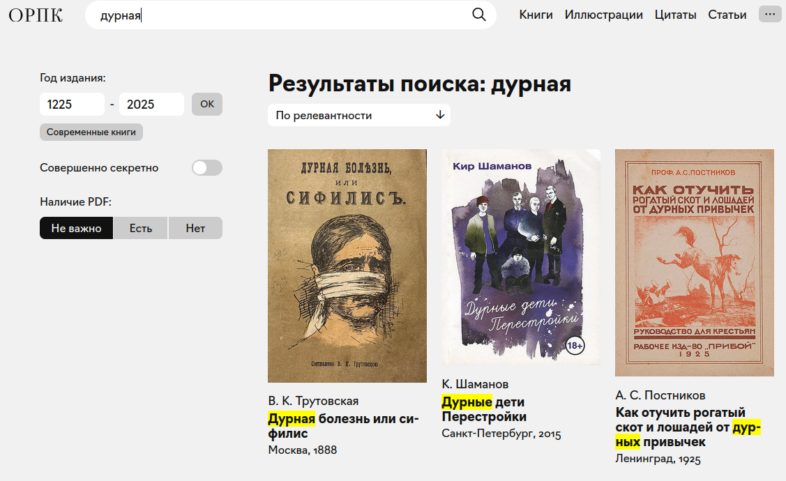 Сайт ОРПК — красиво оформленный тематический каталог PDF-файлов. Проект не представляет интереса для текстологии. Тему, на которую собраны книги, трудно сформулировать, что ограничивает полезность каталога как подборки определённых книг.