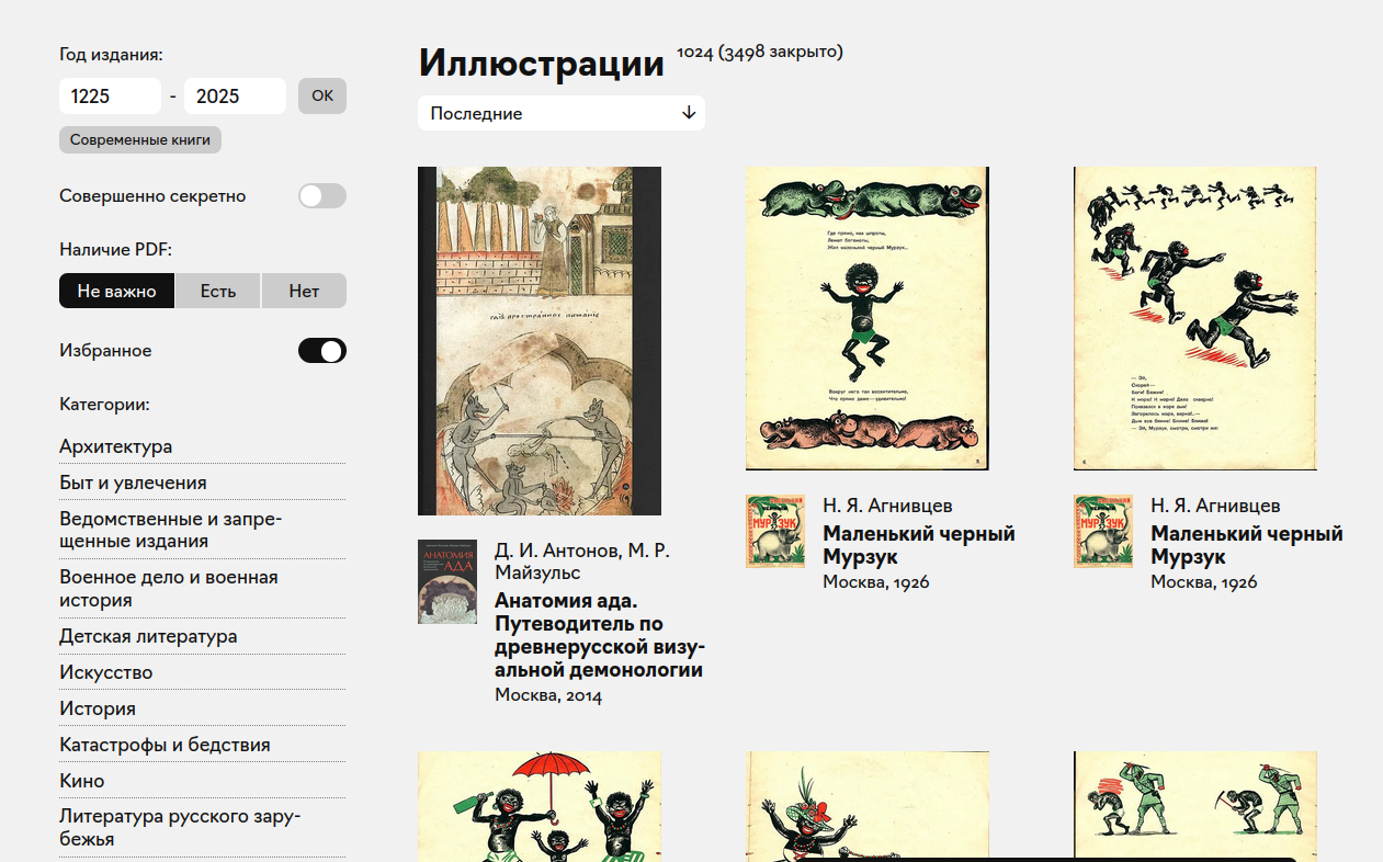 Помимо книг, на сайте есть каталоги иллюстраций и цитат, связанных с книгами. Фильтрация в этих каталогах такая же, как в каталоге книг.
