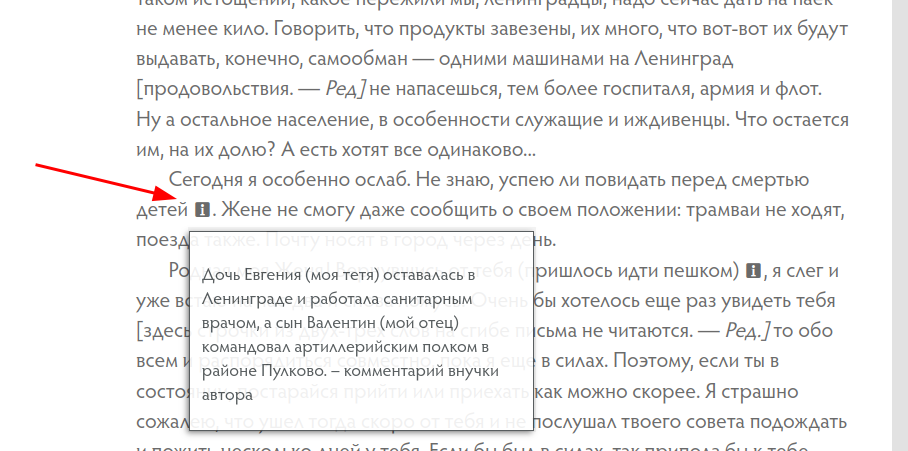 В некоторых местах дневников размещены пометки: при наведении на них появляется комментарий.
