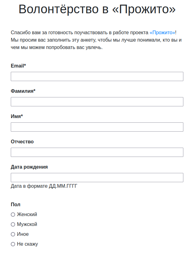 Чтобы стать волонтёром, нужно заполнить анкету.