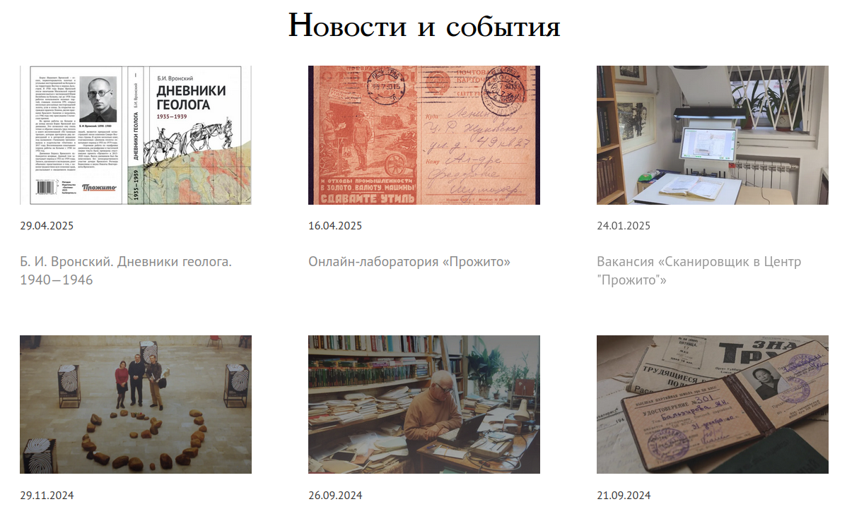 Центр «Прожито» изучает все практики общественной архивистики в России, различные формы существования архивных практик вне архивных учреждений (например, домашних архивов), а также историю взаимодействия архивов и общества в Советском Союзе.